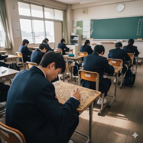 怪談 ~落書き~ 退屈な授業中、いつものように自分の机に落書きをしていた。教師に見つからないよう、鉛筆の芯を少し寝かせて、薄く、だがはっきりと分かるように。小さなキャラクターや意味のない言葉。それは山崎勇人にとって、誰にも知られてはならない…